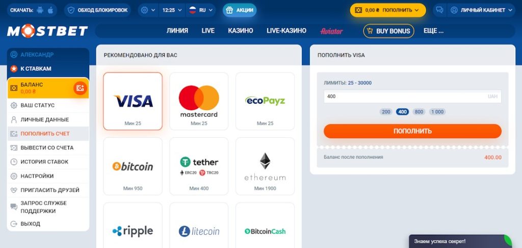 При переводе денег на личный счет Мостбет, онлайн-казино и посредник не взимает комиссионный сбор. Вывод выигрыша осуществляется тем же способом, что и зачисление. Все заявки на выполнение транзакций выполняется в меню «Касса» в «Личном кабинете». При первом снятии выигрыша может потребоваться верификация личности (если сумма выигрыша довольно крупная).