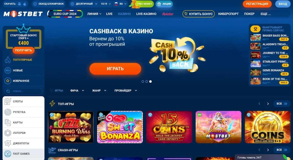 Казино Мостбет — автоматы, live-игры и кешбэк