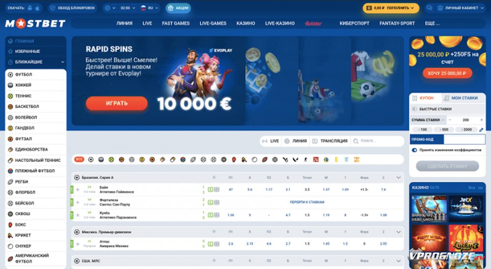Сайт и мобильное приложение Мостбет позволяют делать ставки на: